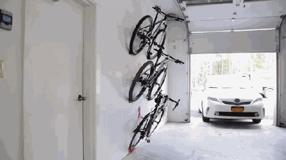 不知道自行车往哪放 这个挂架让把它们都挂上墙